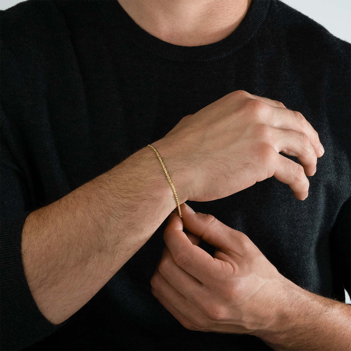 Made in Italy from solid 14k gold, the 2mm Rope Bracelet is compact yet substantial. Polished to perfection, it feels weighty, smooth, and made to last for generations.