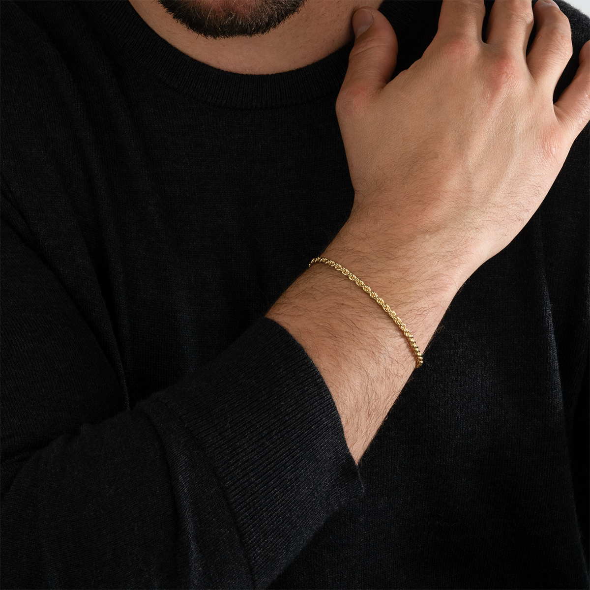 Italian made from solid 14k gold, the 3.1mm Rope Bracelet has a dense, balanced feel that reflects precision craftsmanship. Smooth to the touch and heavy in hand, it’s built to hold its form and luster over time.