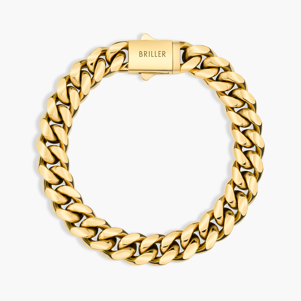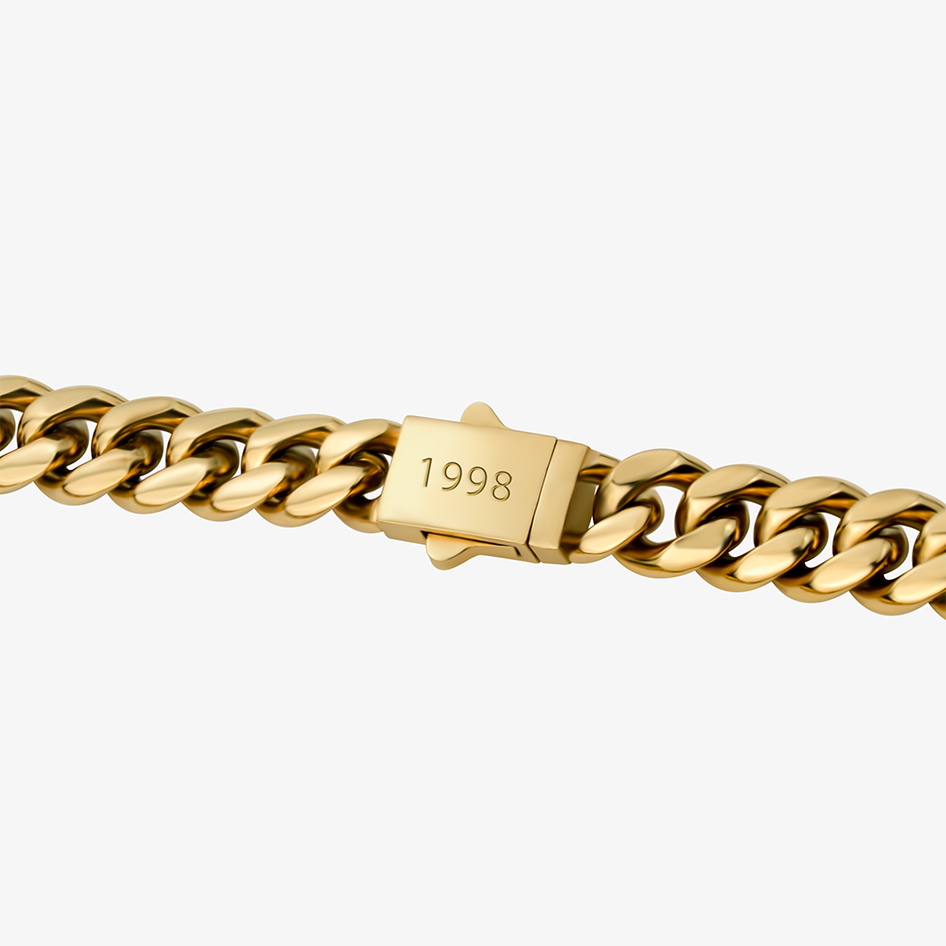 Crafted from solid 316L stainless steel and finished in 14k gold, this 10mm Cuban Link Bracelet has a strong, well-balanced feel and a smooth drape on the wrist. Easy to wear daily with a clean, refined look.